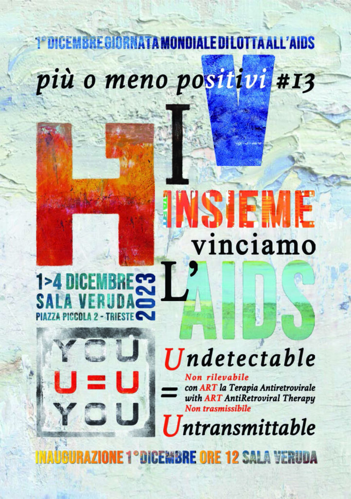 Il 1° dicembre parte la manifestazione con l’inaugurazione della mostra di arti visive “più o meno positivi”, giunta alla sua tredicesima edizione, che viene allestita nella prestigiosa Sala “Umberto Veruda” di Palazzo Costanzi e che s’inserisce nell’ambito delle iniziative di sensibilizzazione, informazione, prevenzione e lotta alla discriminazione in tema di AIDS e malattie emo/sessualmente trasmissibili.