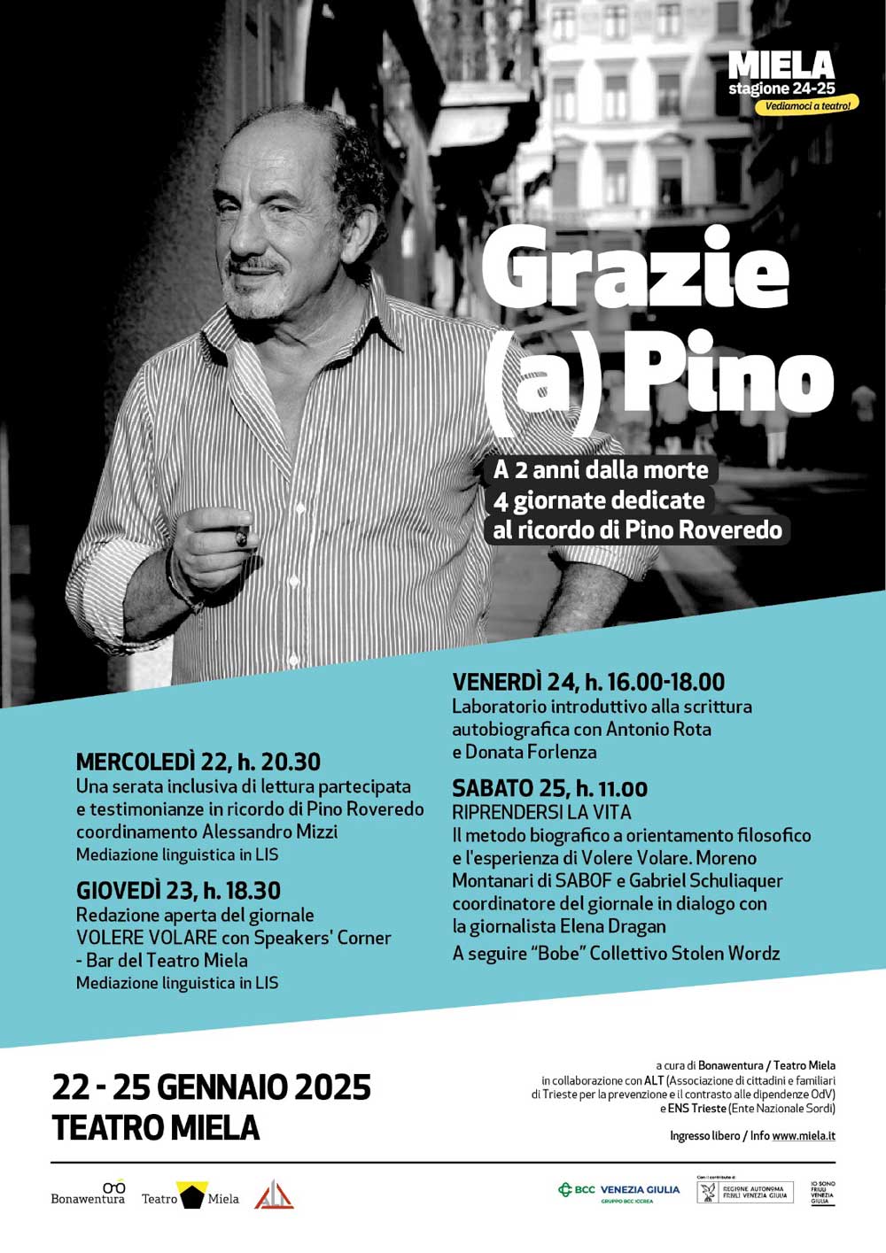 Un incontro tra amici, familiari e persone in generale che hanno condiviso un pezzo di strada con Pino Roveredo, che hanno letto un suo libro, che lo hanno incontrato umanamente, artisticamente o socialmente.